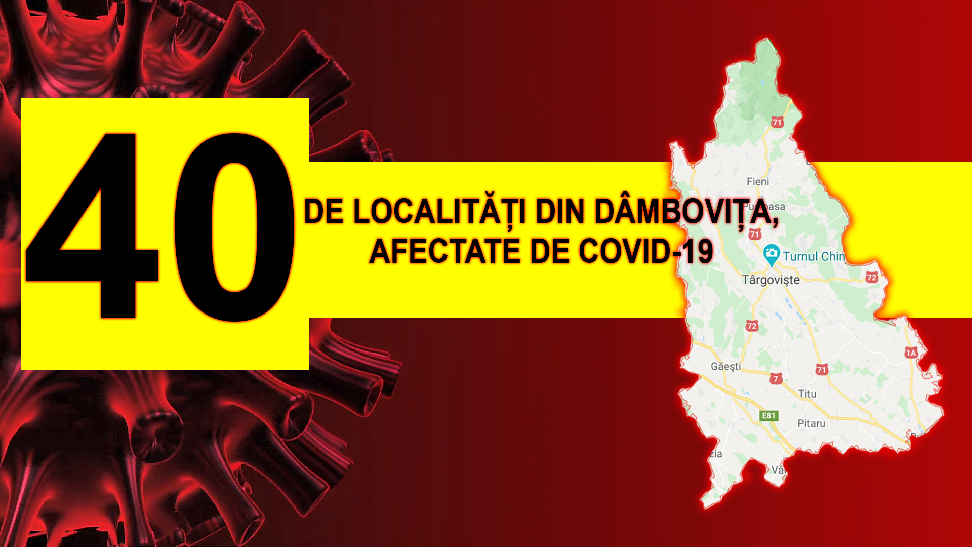 40 de localități dâmbovițene din cele 89 de localități, sunt afectate de inamicul invizibil COVID-19, după ce 231 de dâmbovițeni au fost confirmați pozitiv.