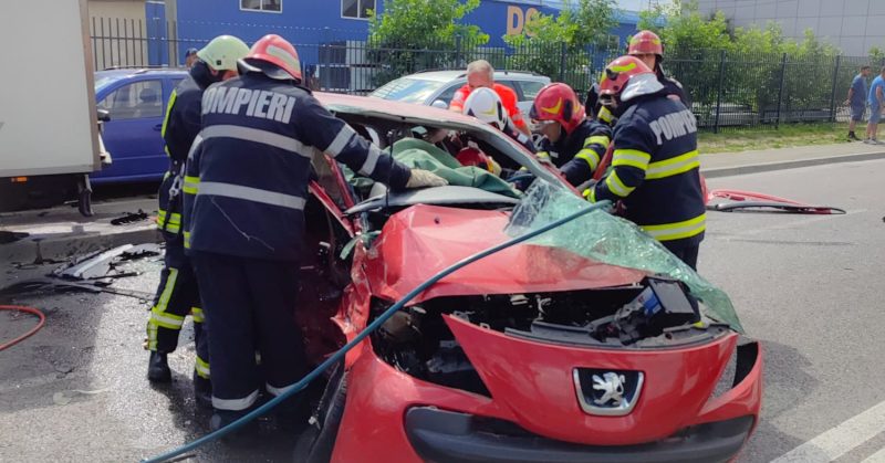 Persoana de sex feminin a fost descarcerată de pompieri, era conștientă și prezenta multiple traumatisme.
