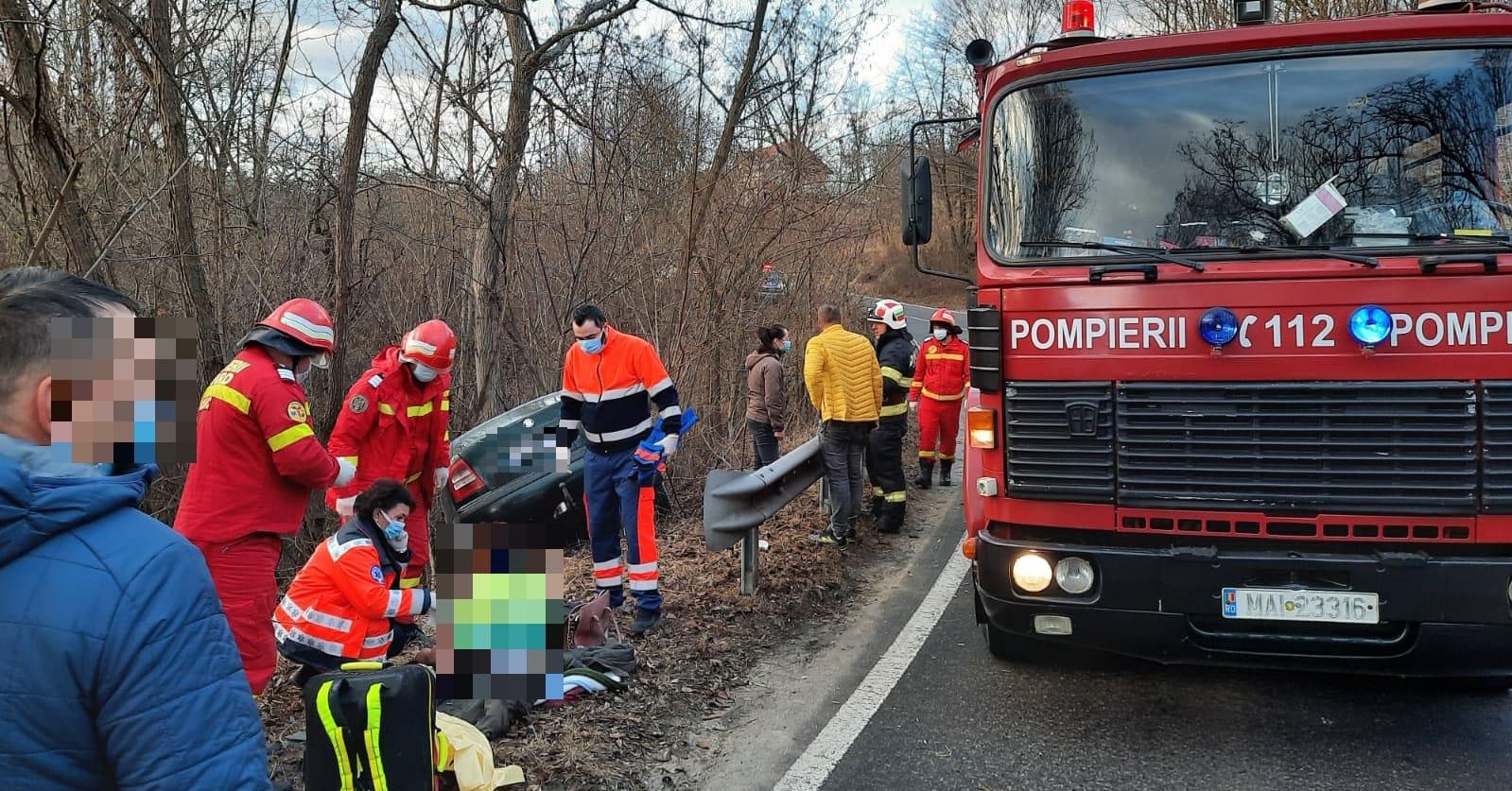 La locul evenimentului rutier pompierii au găsit un autoturism căzut în rapa și patru persoane neîncarcerate.