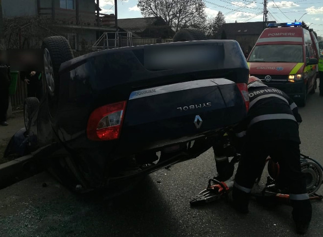 La locul evenimentului, în care a fost implicat un autoturism, care s-a răsturnat pe plafon, salvatorii s-au deplasat cu o autospecială de intervenție și un echipaj de ambulanță SMURD.