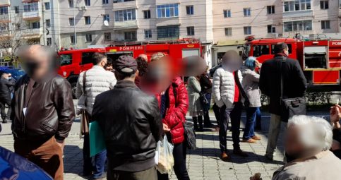 Update: Din cercetarile efectuate, pompierii au identificat ca fumul provine de la un incendiu produs intr-un canal tehnologic, adiacent cladirii, unde ard deseuri menajere. Au fost evacuate din cladire cca. 30 de persoane. Nu sunt victime.