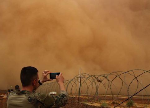 Miercuri seară, militarii români din detașamentul Carpathian Pumas s-au întâlnit cu un inamic impresionant și de necontrolat: fenomenul meteo specific zonelor deșertice cunoscut ca „Haboob”, un cumul de furtuni de nisip de mare amploare.