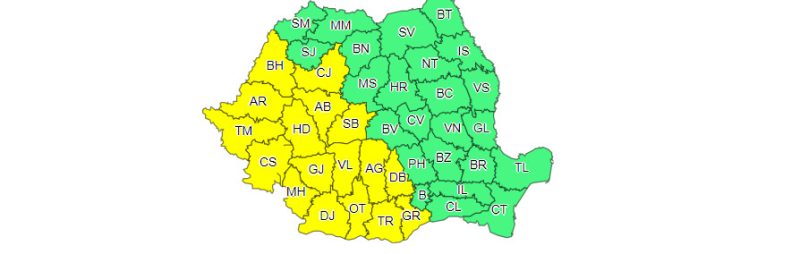 ALERTĂ!ATENȚIONARE METEOROLOGICĂ COD GALBEN de PLOI TORENȚIALE, VIJELII și GRINDINĂ