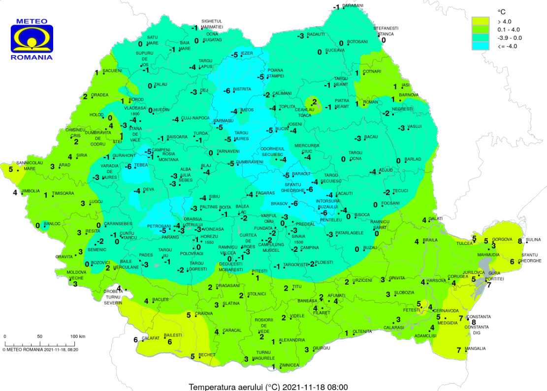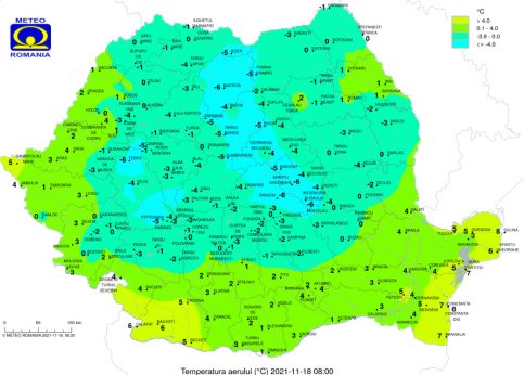 Temperaturile maxime se vor încadra între 3 şi 13 grade, iar cele minime între -1 şi 5 grade. Dimineaţa şi noaptea pe arii relativ restrânse se va semnala ceaţă.