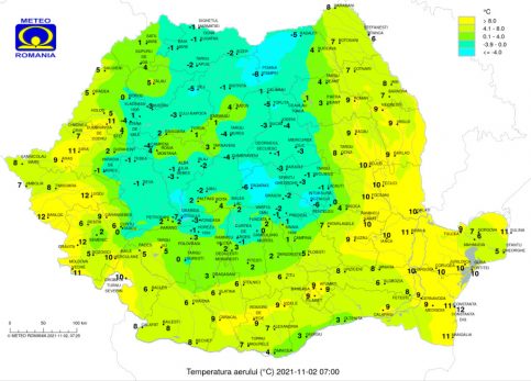 Temperaturile maxime se vor încadra între 8 și 17 grade, iar cele minime vor fi cuprinse, în general, între 2 și 10 grade. Pe arii restrânse se va semnala ceață.
