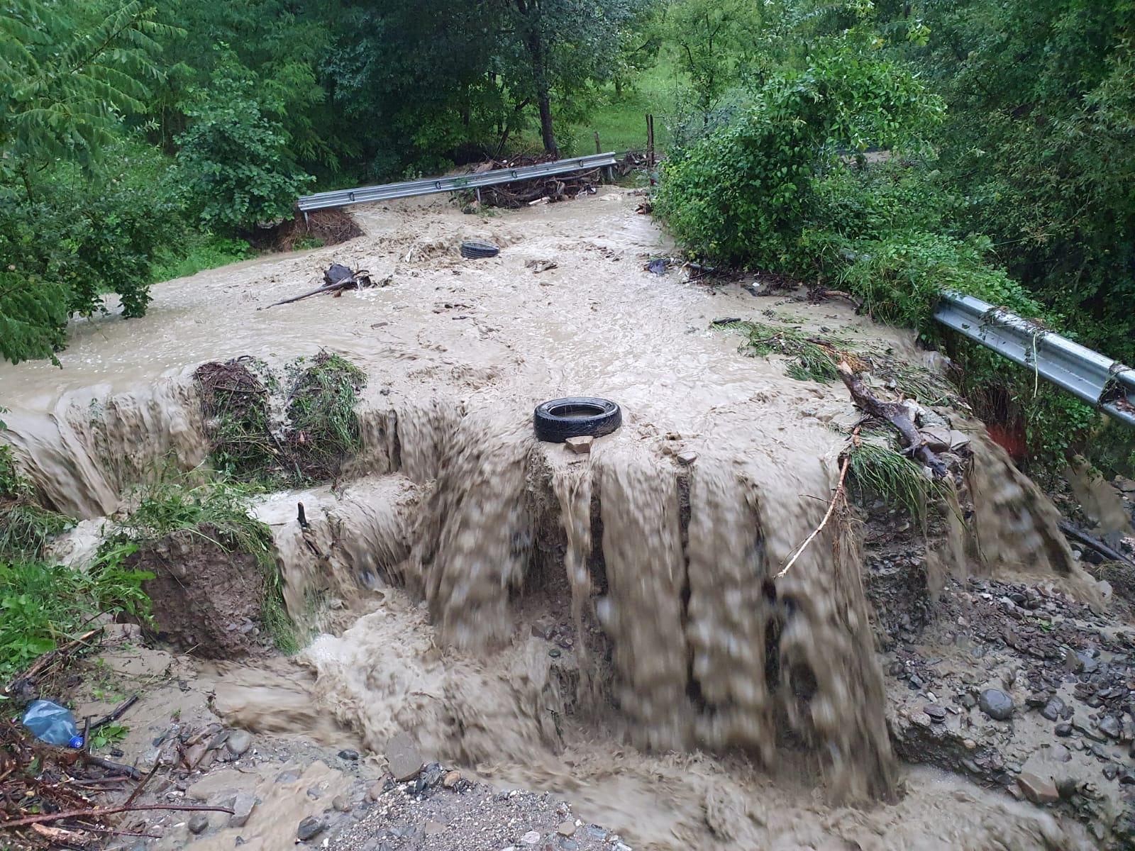 Viitura puternică de pe pârâul Valea Largă a înghițit drumul.