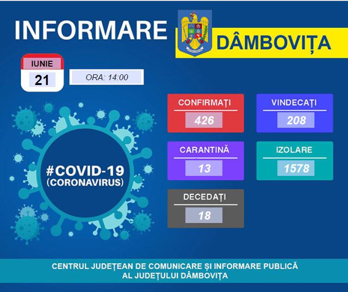 Astăzi, 21.06.2020, conform situației DSP Dâmbovița: