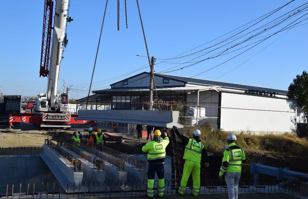 Au demarat lucrările de montare a grinzilor principale la podul peste pârâul Racovița, din comuna Băleni