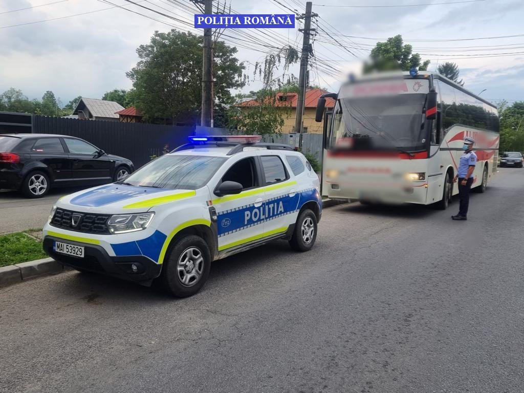 Autocar ce transporta persoane, pe ruta România-Anglia,tras pe dreapta de polițiștii dâmbovițeni care au constatat că șoferul în vârstă de 39 de ani, nu deținea autorizație în regim de închiriere.