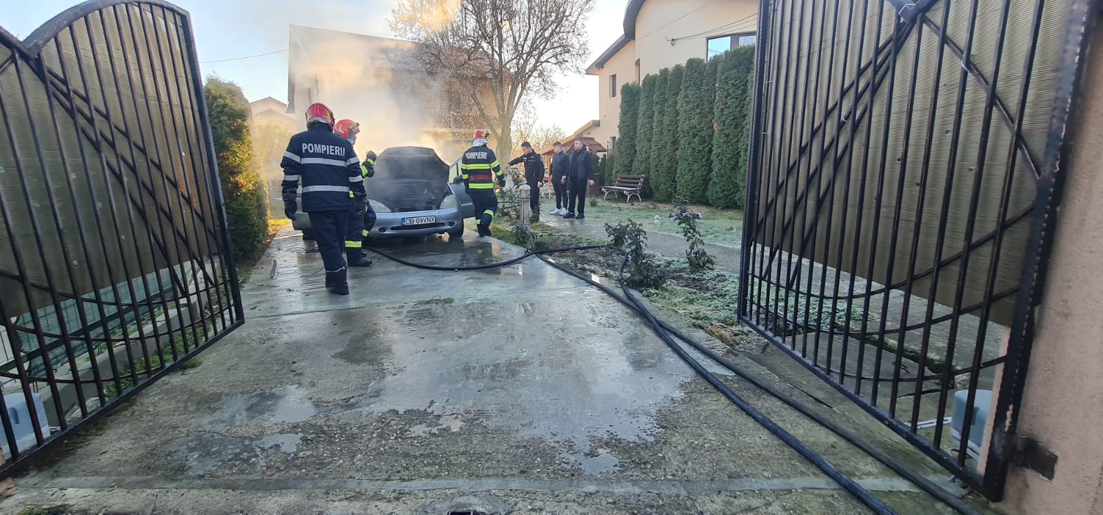 AUTOTURISM CUPRINS DE FLĂCĂRI, în jurul orei 09:30,pompierii au fost solicitați să intervină în cazul unui incendiu produs la un autoturism în str. Independenței din Găești.