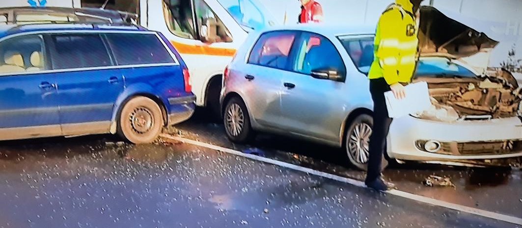 Carambol , 15 mașini implicate, neadaptarea vitezei și nerespectarea distanței în mers pe fondul unui carosabil acoperit cu polei, totul s-a produs la ieșirea din Brașov spre Predeal.