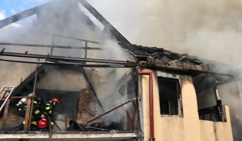Casă cuprinsă de flăcări, pompierii intervin pentru înlăturarea pericolului de extindere la altă gospodărie, nefericitul incendiu are loc în satul Lazuri, comuna Comișani