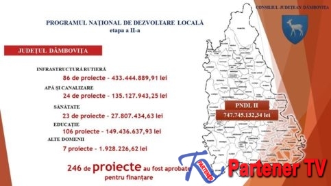 Întreaga sumă alocată județului Dâmbovița în cadrul PNDL II, pentru cele 246 de obiective de investiții, este de 747.745.132,34 lei.