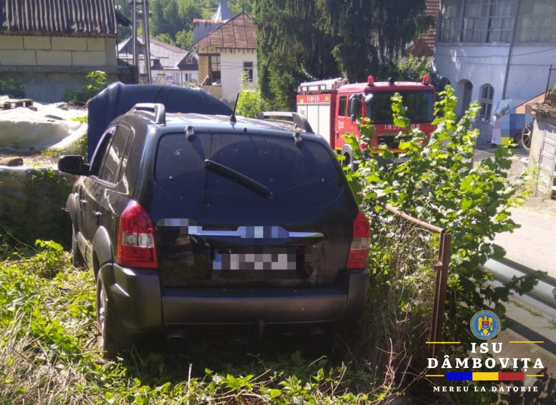 Clipe de groază, s-a răsturnat cu mașina, în jurul orei 09:23, pompierii au fost solicitați să intervină în cazul unui eveniment rutier în localitatea Văleni-Dâmbovița, unde un autoturism a ieșit în afara părții carosabile.