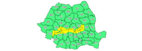 COD GALBEN de ninsori moderate cantitativ și intensificări ale vântului, 20 decembrie, ora 10:00 – 21 decembrie, ora 10:00, la altitudini de peste 1700 m în Carpații Meridionali și de Curbură, potrivit ANMH.