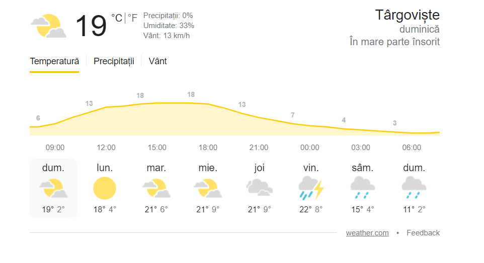 Cum va fi vremea duminică, 27 martie 2022, cerul va fi variabil, mai mult senin noaptea. Vântul va sufla slab și moderat, cu unele intensificări parcursul zilei în regiunile estice şi în zona montană înaltă.