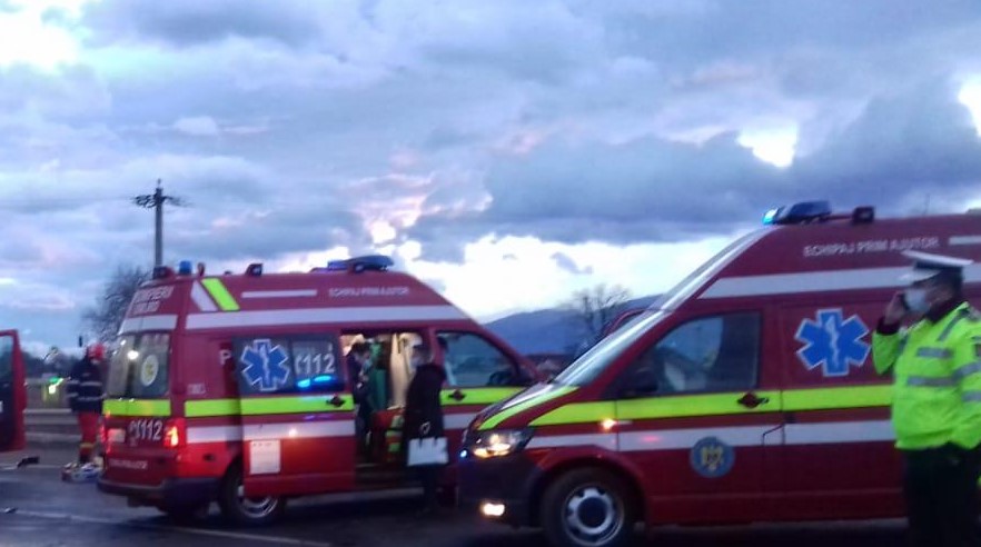 Sunt implicate un autoturism și un microbuz.