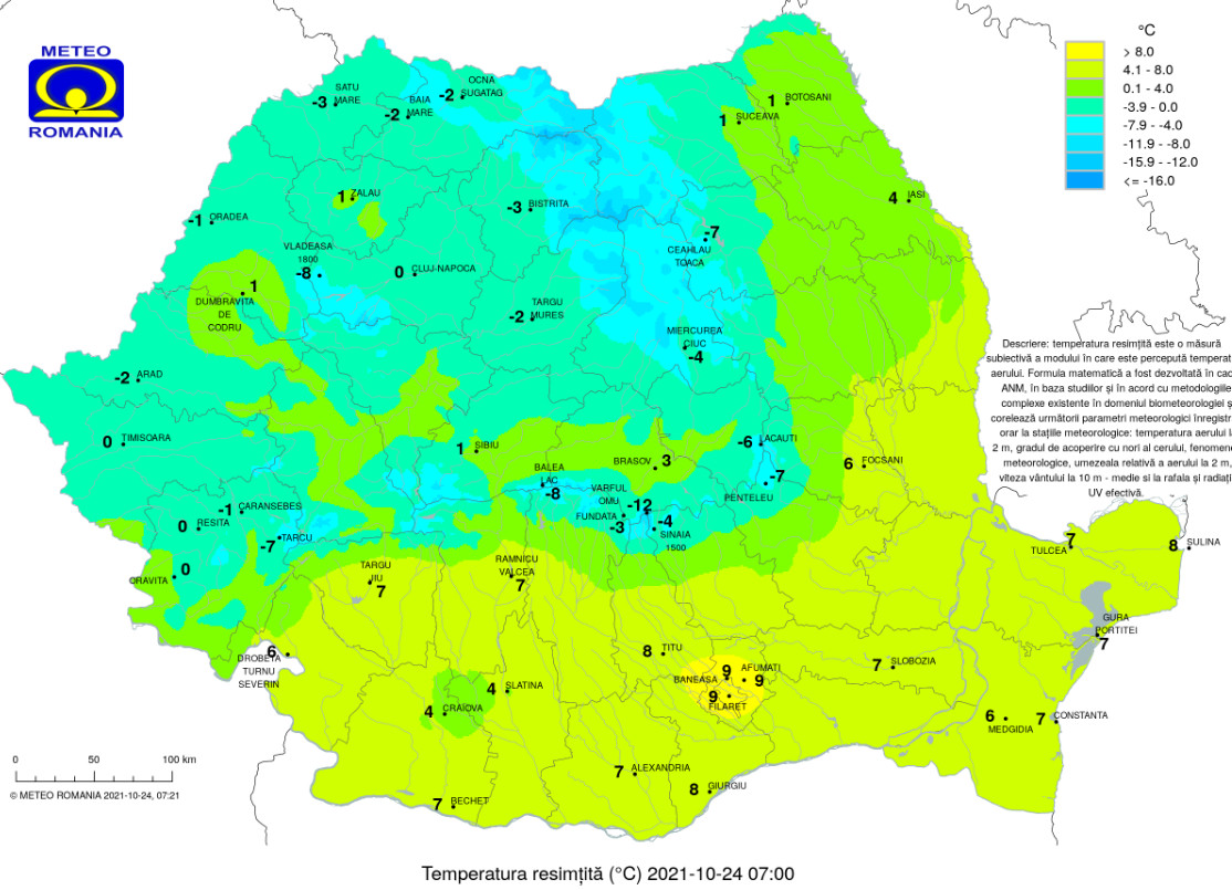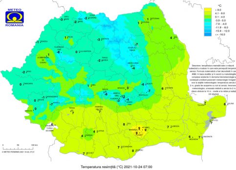 Duminică, 24 octombrie,temperaturile maxime se vor încadra între 8 și 17 grade, valorile termice vor continua să scadă, astfel că vremea va deveni rece pentru această perioadă în cea mai mare parte a țării.