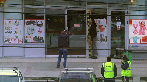 Poliţiştii, criminaliştii şi agenţii de pază de la Pavcom dar şi angajaţii şi patronii chinezi roiau pe lângă uşa magazinul China Mega Shop de la Pavcom care a fost forţată în noaptea de vineri spre sâmbătă.