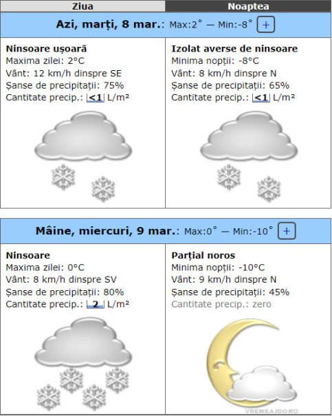 Interval de valabilitate: 6 martie, ora 14 – 8 martie, ora 20