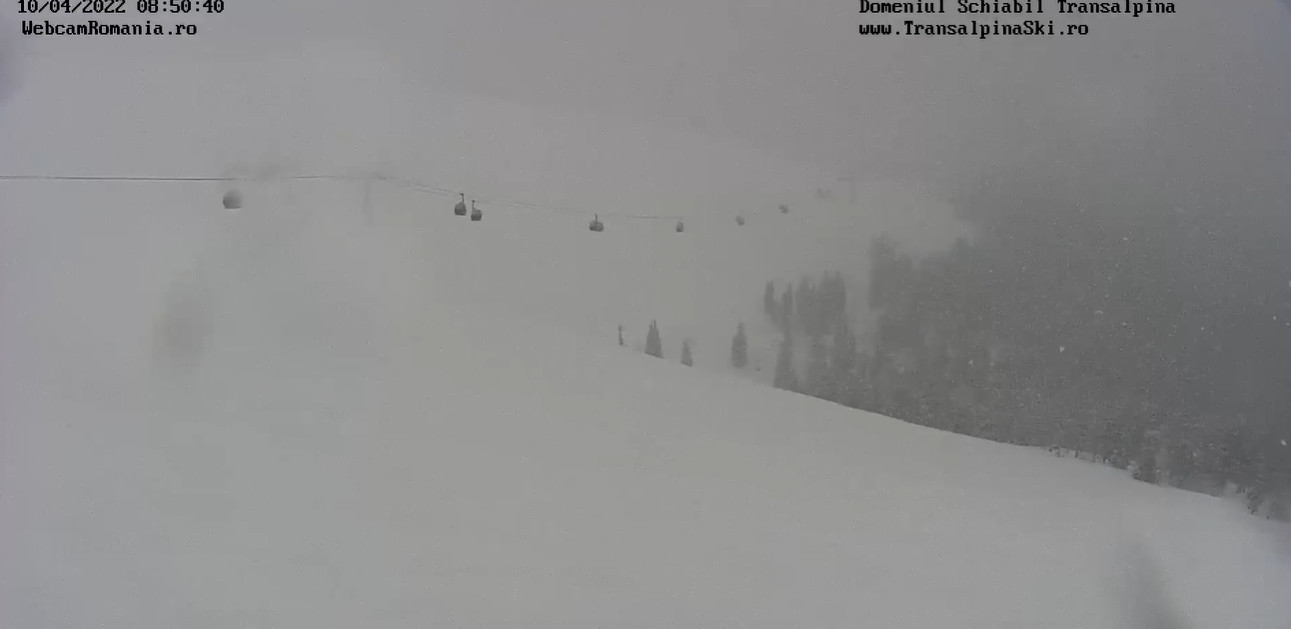 La această oră ninge  ca-n povesti în zona Domeniului Schiabil Transalpina.