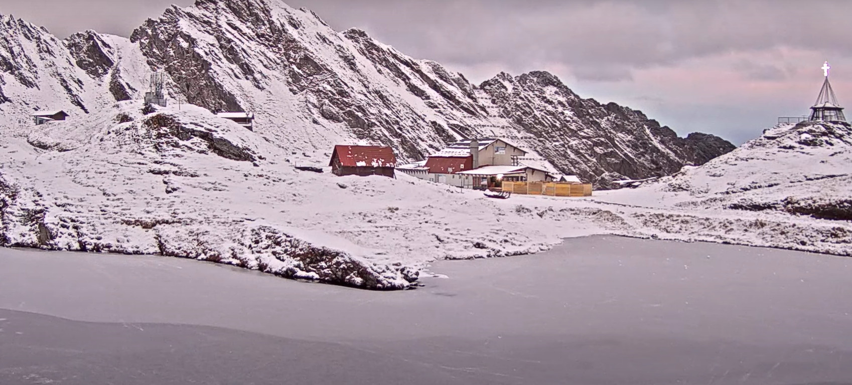 La Bâlea Lac  stratul de zăpadă atinge 8 cm, astazi maxima nu va depăși -3 grade Celsius .