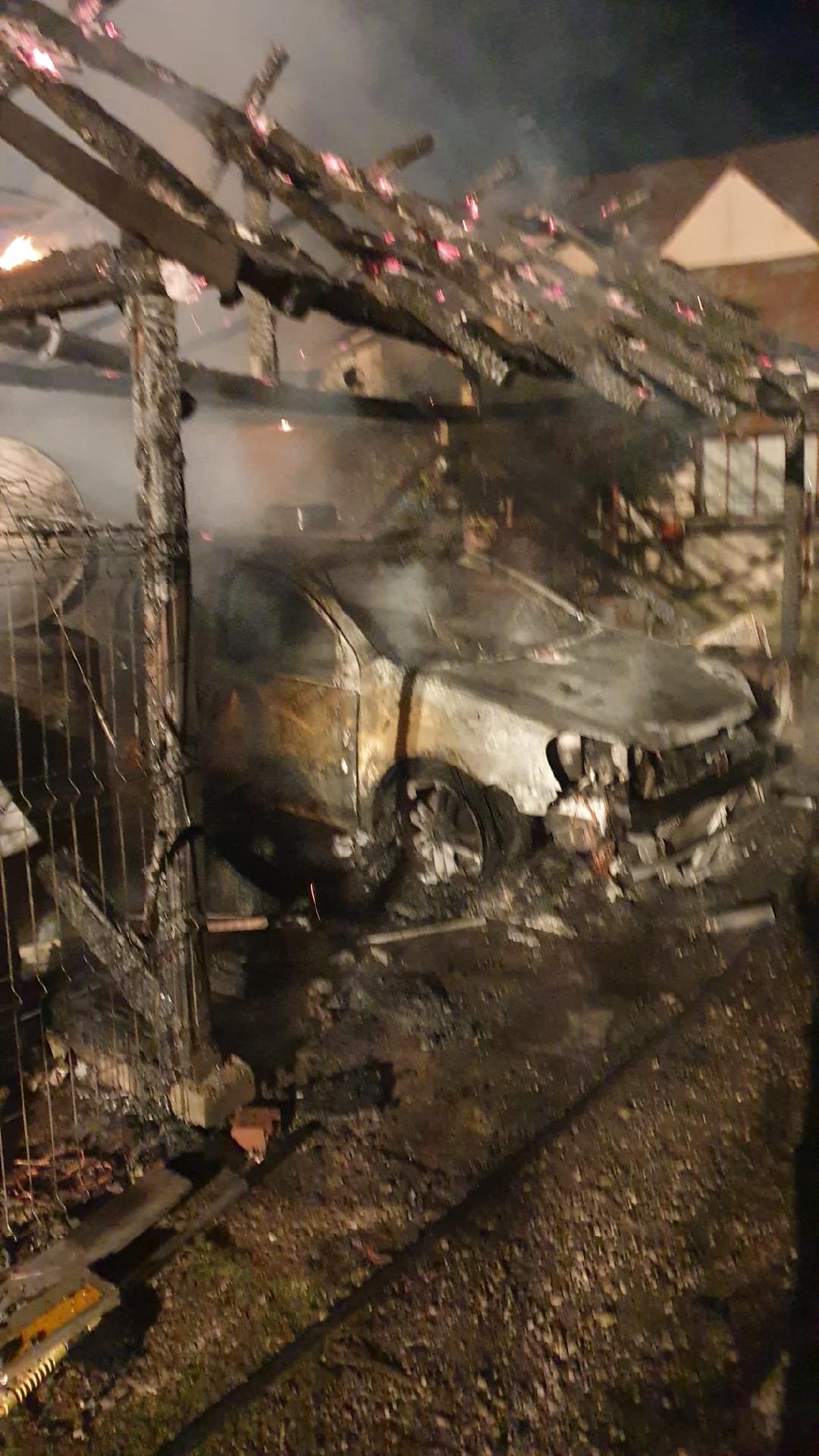 Sosiți la locul evenimentului pompierii au constatat ca flăcările se manifestau la nivelul acoperișului casei pe o suprafață de aproximativ 100 mp și flăcările au cuprins și un garaj în interiorul căruia se afla un autoturism.