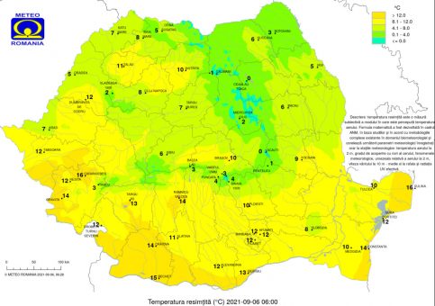 Început de săptămână, cu minime de 0 grade în depresiunile,luni vremea va fi răcoroasă în toată ţara, chiar rece pentru prima decadă a lunii septembrie în regiunile estice.
