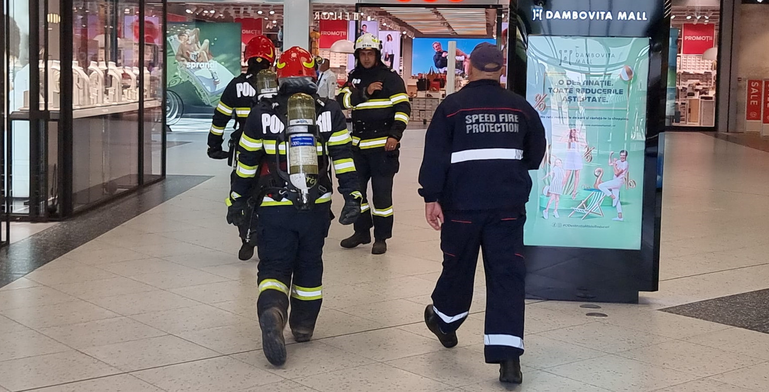 ISU Dâmbovița a desfășurat un EXERCIȚIU la DÂMBOVITA MALL, scenariul a fost legat de un incendiu în zona de alimentație publică aflată la etaj în cadrul Dâmbovița Mall.