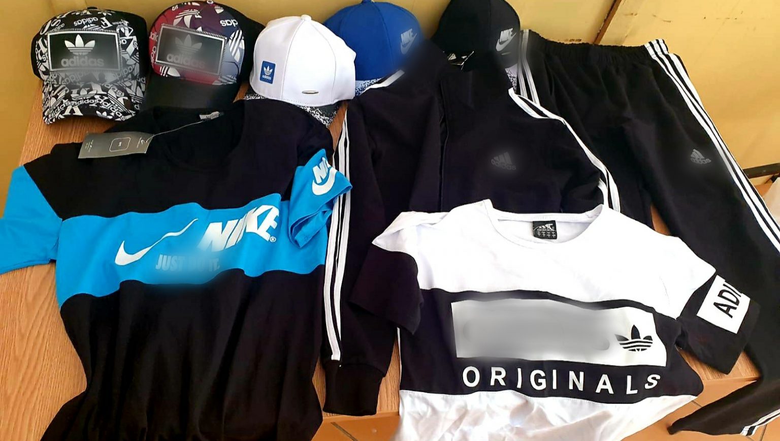 În urma verificărilor efectuate asupra bărbatului în vârstă de 42 de ani au fost găsite mai multe articole vestimentare (tricouri, pantaloni, bluze de trening, șepci) cu numele unor mărci consacrate.