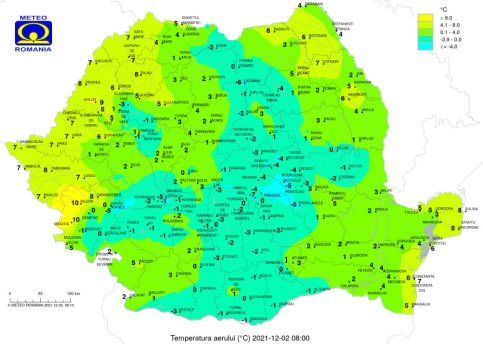 Temperaturile maxime vor fi de la 6…7 grade în Maramureș și estul Transilvaniei, până spre 15 grade în sudul Banatului, iar cele minime între -3 și 7 grade. Dimineața și noaptea, în zonele joase, izolat se va semnala ceață.