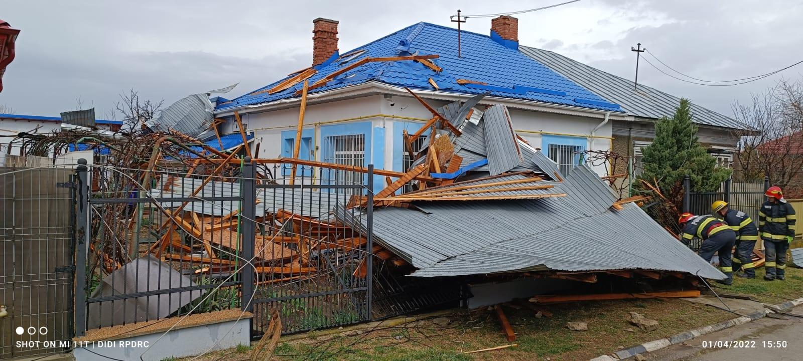 Pompierii au acționat pentru degajarea elementelor de acoperiș luate de vânt care au căzut pe garajele din apropiere și o casă.Din fericire, nu au fost înregistrate victime.Pentru îndepărtarea efectelor negative au acționat 22 de pompieri cu 6 autospeciale de intervenție.