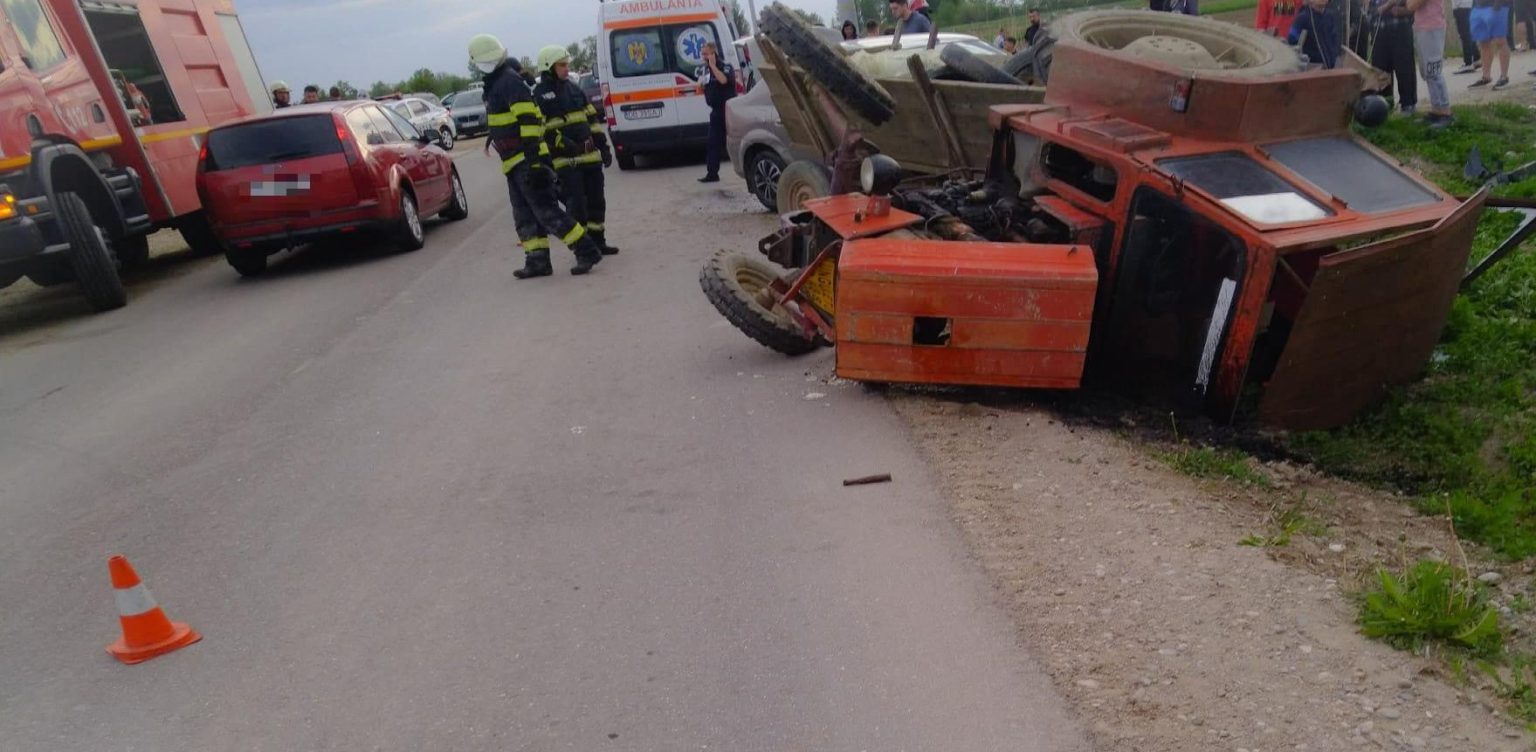 LUNGULEȚU, accident grav între un tractor care tracta o căruță și un autoturism, imediat la fața locului au ajuns pompierii de la Detașamentul Titu cu o autospecială ASAS, o autospecială descarcerare și SAJ DB cu un echipaj.