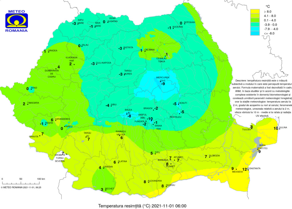 Temperaturile maxime se vor încadra între 10 și 18 grade, iar cele minime între -5 grade în estul Transilvaniei și 10 grade pe litoral și în Dealurile de Vest. Dimineața și noaptea, în zonele joase de relief, izolat va fi ceață.