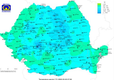 Temperaturile înregistrează creșteri comparativ cu zilele precedente, însă vremea rămâne rece pentru această perioada a anului. Temperaturile maxime se vor încadra între 3 și 11 grade, în timp ce minimele se vor situa între -10 și 0 grade Celsius.