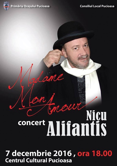 Miercuri, 7 DECEMBRIE 2016, ora 18.00, la Centrul Cultural Pucioasa, va avea loc concertul ”Madame mon Amour”, cu NICU ALIFANTIS.