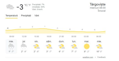 Un nou val de ninsori va acoperi România, iar temperaturile maxime nu vor depăși valoarea de 6 grade Celsius. În ceea ce privește temperatura minimă, aceasta se va încadra între -14 și -1 grad Celsius.