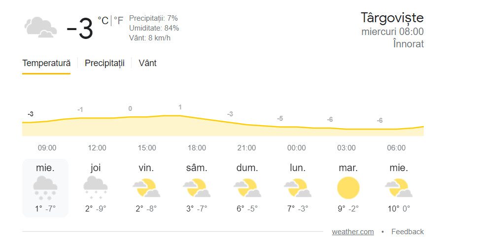 Miercuri, 9 martie 2022, temperaturile scăzute se mențin în majoritatea regiunilor, cerul va fi înnorat, iar precipitații sunt prezente atât sub formă de ninsoare, cât și mixte.