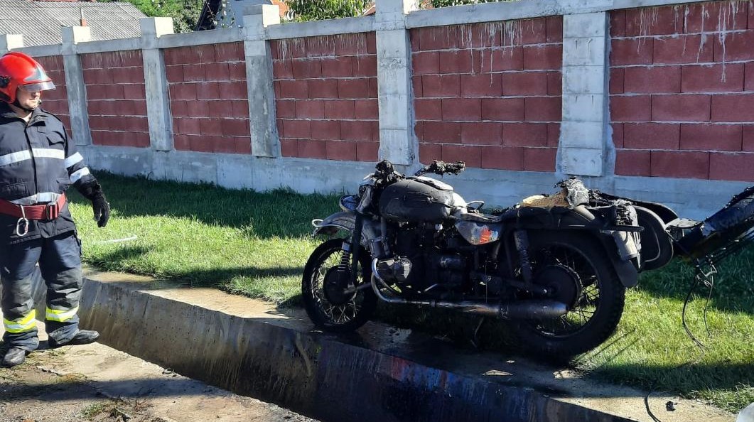Pompierii de la Garda Voinești au intervenit pentru stingerea unui incendiu izbucnit la o motocicletă pe DN72A în Gheboieni. Incendiul s-a produs după ce motocicleta a părăsit partea carosabilă în urma unui accident. Motociclistul a pierdut controlul vehiculului și a părăsit carosabilul.