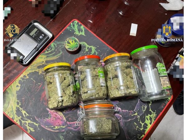 Astfel, au fost puse în aplicare 3 mandate de percheziție domiciliară, în județele Argeș și Dâmbovița, fiind descoperite și ridicate aproximativ 500 de grame canabis, ustensile folosite la porționarea substanțelor, două telefoane mobile, precum și 6.600 de lei.