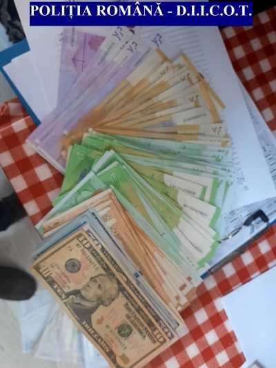 Persoanele respective au fost conduse la sediul poliției, în vederea audierii.În urma perchezițiilor domiciliare, au fost descoperiți și ridicați, în vederea confiscării, 103.070 de lei, 33.110 euro, 970 de dolari, 400 de shekeli israelieni, 280 de lire sterline, 2,6 kg. de aur și un pistol tip airsoft. De asemenea, la domiciliul uneia dintre persoanele bănuite, au fost descoperiți 10.000 de dolari, 20.500 de euro și 7.500 de lire, în bancnote false.