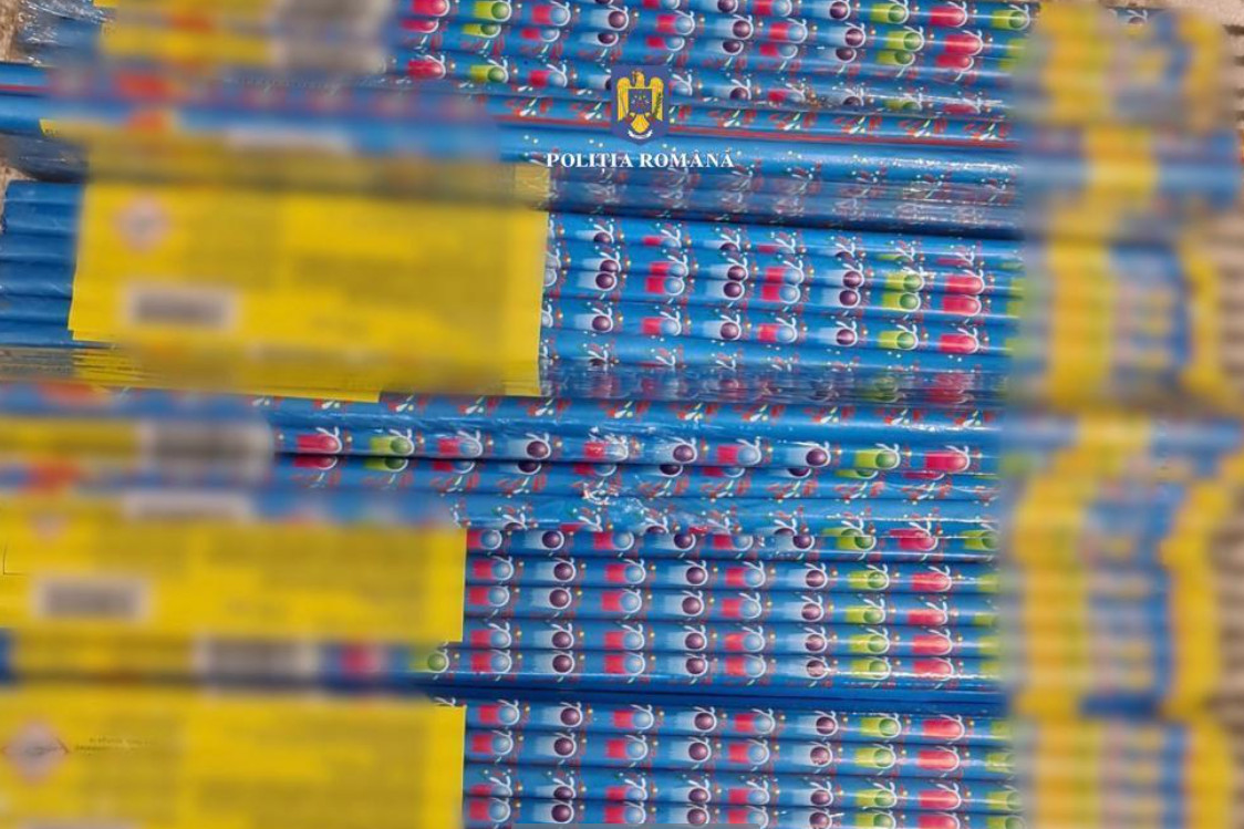 În urma percheziției efectuate, polițiștii au descoperit și indisponibilizat 28 de kilograme de articole pirotehnice din categoriile P1, F2, F3,F4, deținute ilegal în vederea comercializării.