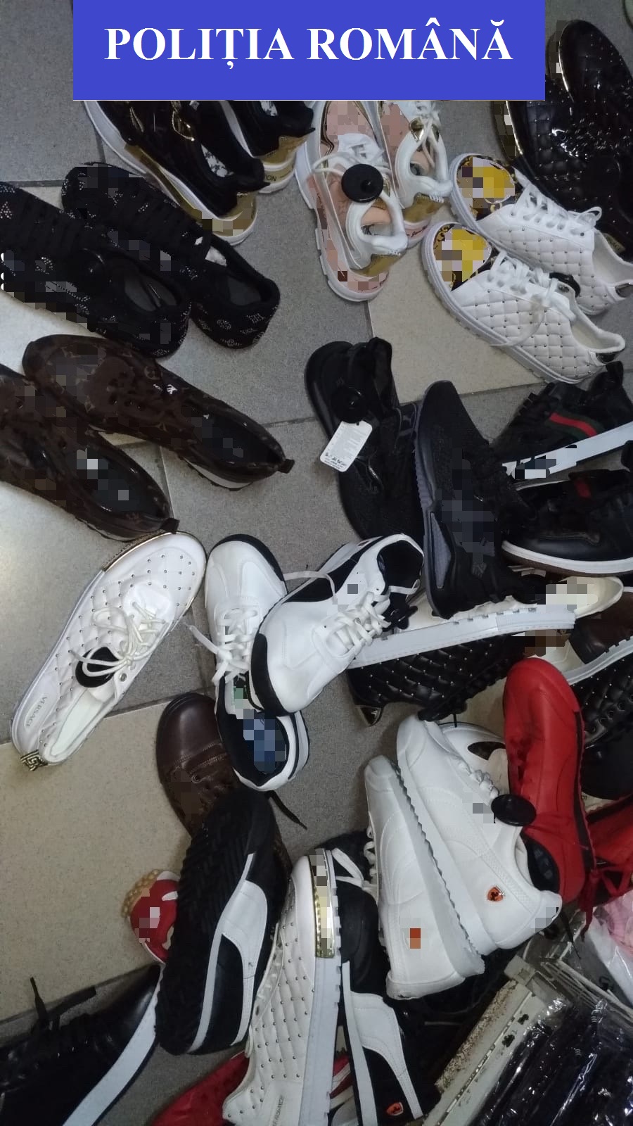 În urma verificărilor efectuate, în spațiile de depozitare, a fost identificată o cantitate mare de produse (încățăminte sport) inscripționate cu diferite mărci înregistrate și protejate pe teritoriul României, cu privire la care există bănuiala că ar fi contrafăcute.