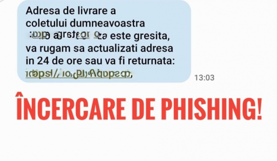 PHISHINGUL – O AMENINȚARE CIBERNETICĂ CONSTANTĂ, Poliția Română atrage atenția asupra fraudelor online, comise prin metoda phishingului. Victimele sunt abordate prin diferite moduri (e-mail, SMS, voice phishing) și sunt determinate să transmită atacatorilor date personale, bancare sau de autentificare, pe care autorii le utilizează în scopul comiterii altor fapte de natură penală.