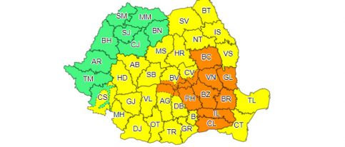 Notă: Ploi abundente vor fi pe spații mici și în celelalte județe din Muntenia și Moldova.