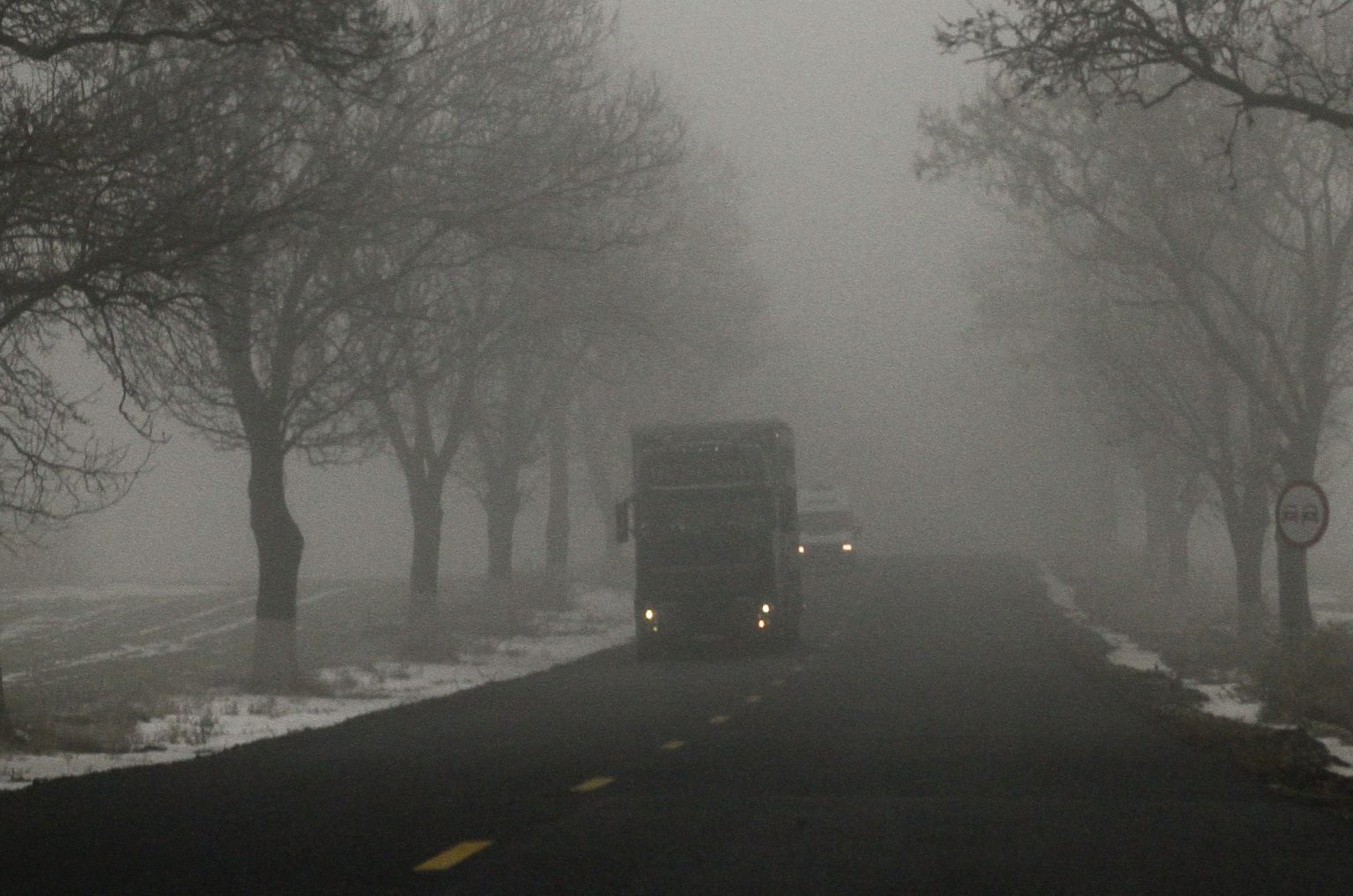 Autovehicole se deplaseaza cu dificilltatea pe DN2A/E60 din cauza cetii si a poleiului, sambata, 12 ianuarie 2013. ALEXANDRU SOLOMON / MEDIAFAX FOTO