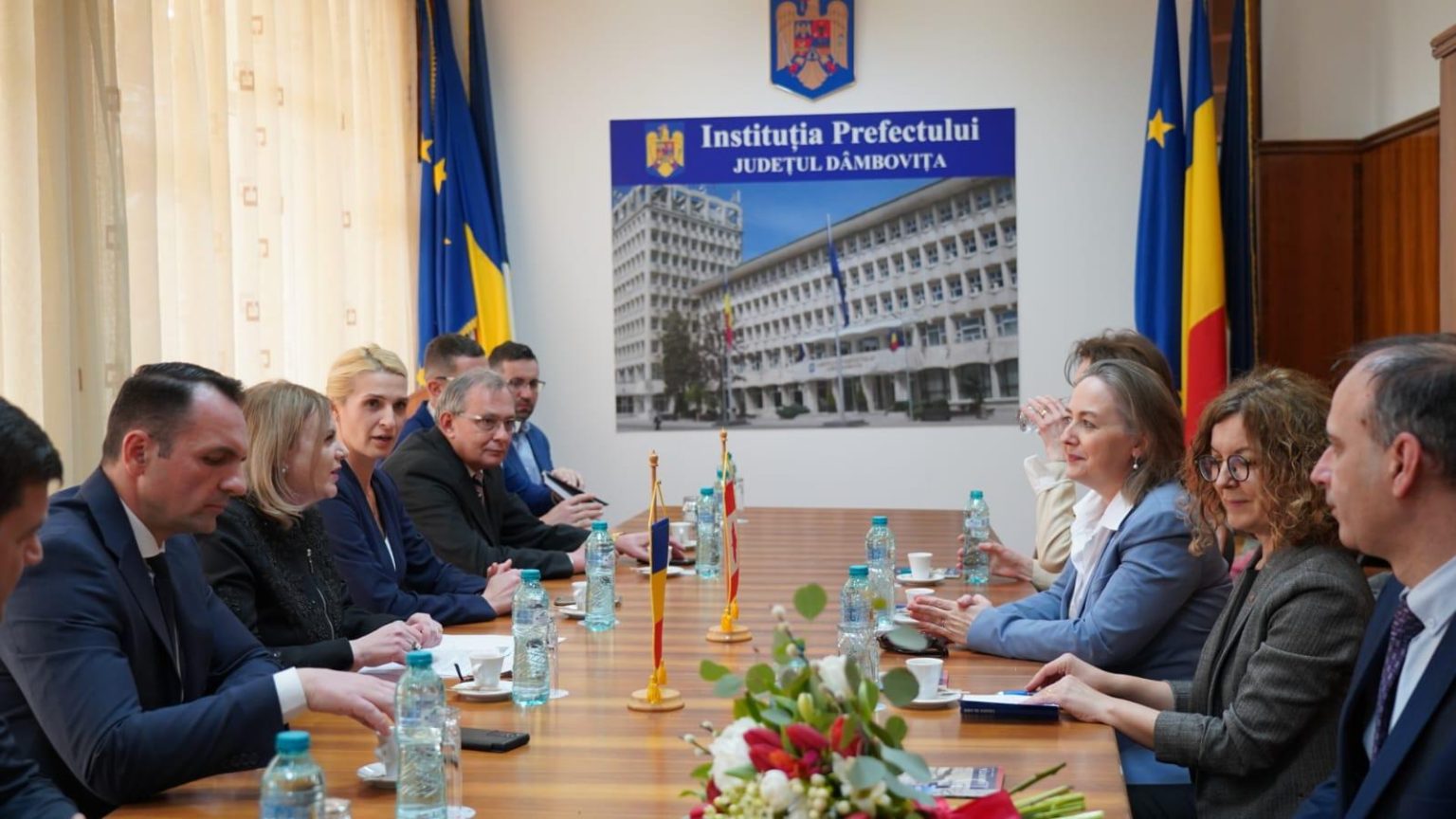 ”Am avut onoarea și plăcerea de a marca, în cadrul acestei întâlniri, câteva elemente caracteristice județului nostru, de o deosebită importanță, care pot pune bazele unei colaborări solide pentru viitor. În acest sens, i-au fost prezentate înaltului oaspete canadian oportunitățile și potențialul economic și turistic al județului, în sensul atragerii unor investiții prin care Dâmbovița să se dezvolte. De asemenea, în cadrul întâlnirii a fost subliniată importanța dialogului și cooperării.” a declarat prefectul, Claudia GILIA)
