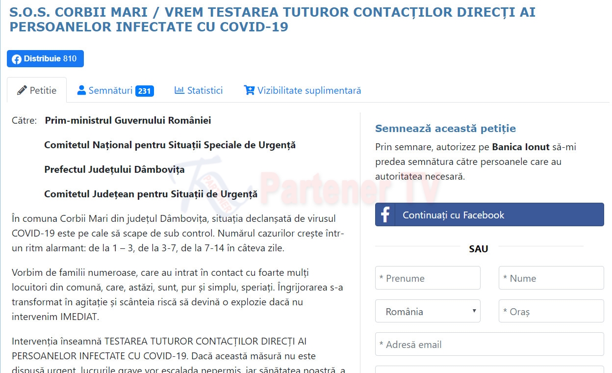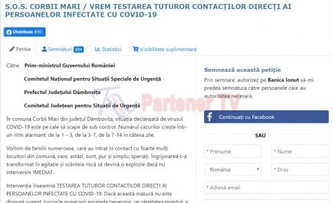 Concret, edilul cere măsura urgentă a testării persoanelor care au avut contact cu cetățenii infectați din Corbii Mari, care va limita masiv riscul unui pericol uriaș de îmbolnăvire la nivelul comunei.