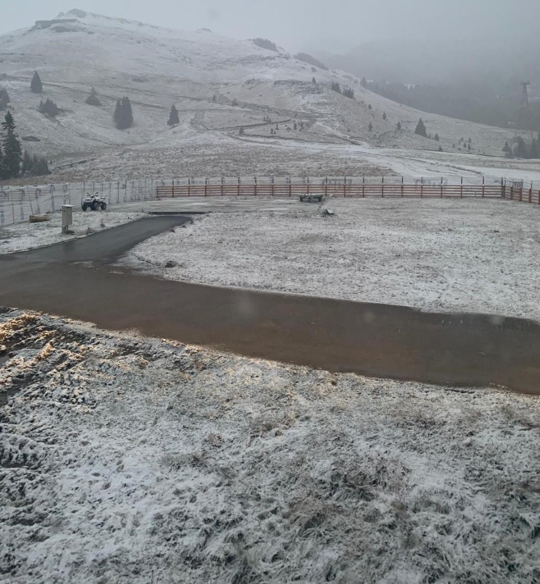 După zile călduroase din ultima perioadă, la munte, iarna se arată timid, iar temperaturile au scazut brusc și au căzut primii fulgi de nea.