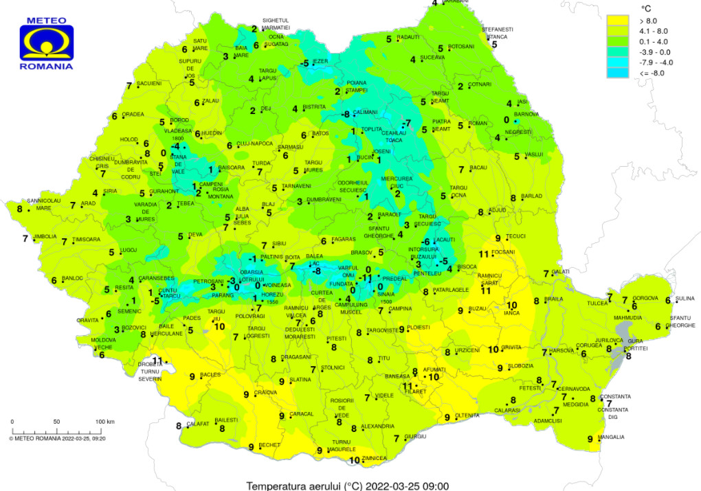 Prognoza meteo 25 martie 2022, în prima parte a zilei, cerul este senin, iar vântul suflă slab şi moderat, cu unele intensificări pe crestele montane.